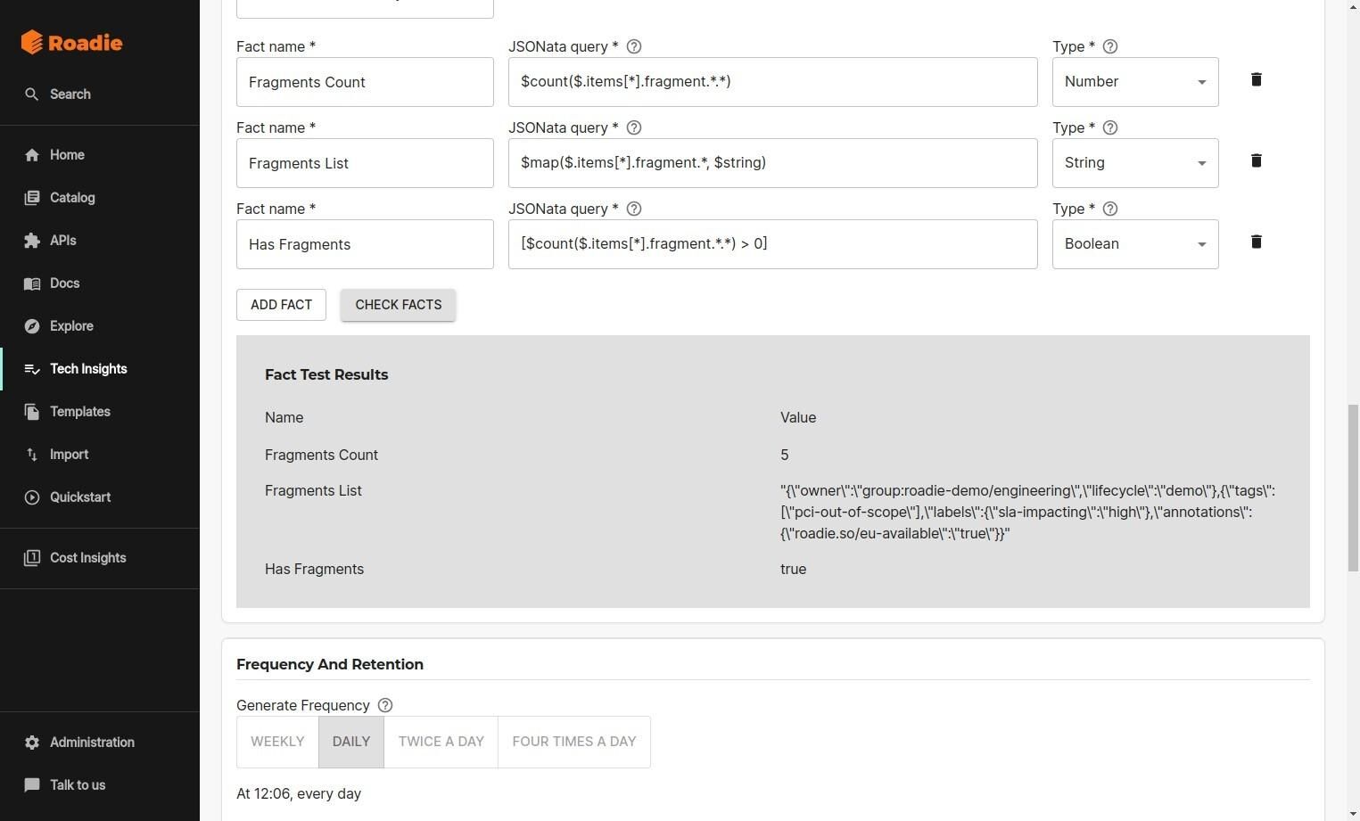 - How to parse files with JSONata in Roadie and extract facts from the Roadie Fragments API.