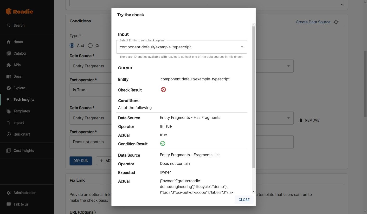 Check the "roadie.io/applied-fragments" field